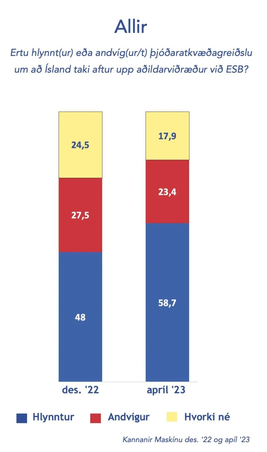 Maskína hefur í tvígang, í desember 2022 og apríl 2023, spurt eftirfarandi spurningar:
